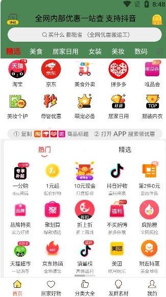 1、从生活百货,美妆个护,到零食小吃,数不尽的品类,想不到的低价, 让您快速成为朋友圈的购物达人!