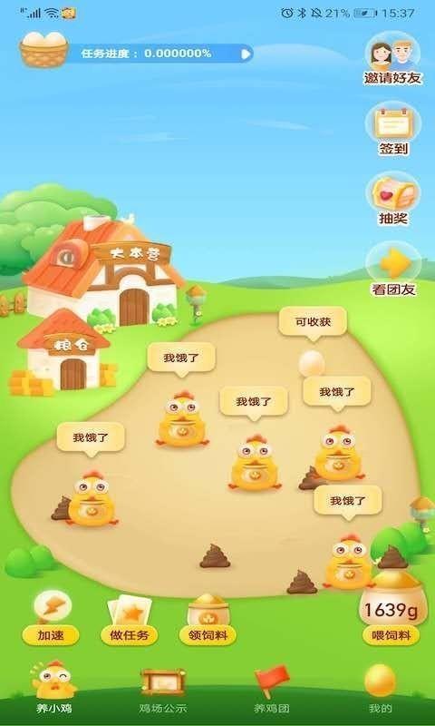 通过在Egg Duoduo软件上完成任务来赚取用于喂养鸡的饲料,并使用饲料来喂养鸡。 鸡吃饱之后,他们可以收集鸡蛋。