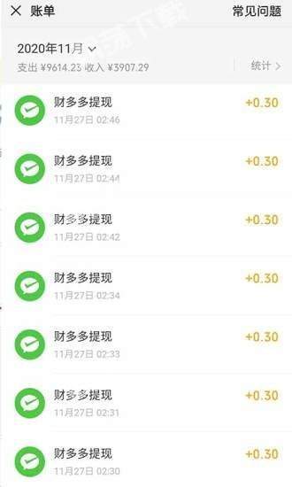2、提现自动存入微信零钱,0.3元就可以提现,一天可以提现30多次。