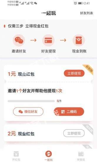 3、现金红包:邀好友,好友抢红包,红包直接提现。