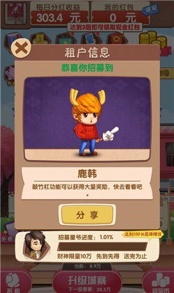 4、当房屋满级时,有几率获得分红屋,享受每日超过300元的现金分红。