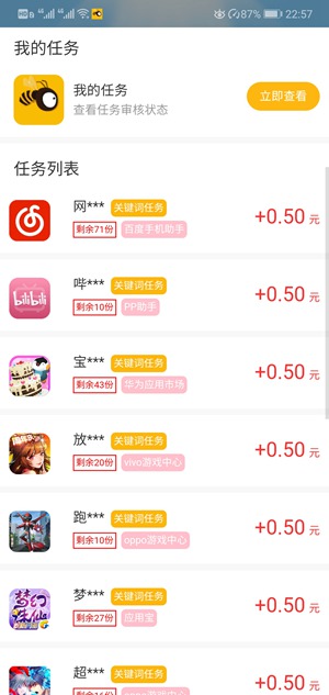 2019年9月24日,iOS苹果试玩赚钱蜜蜂试玩上线了安卓版,安卓版关键词任务0.3 - 0.5元不等,注册任务 0.5-0.6元, 每天大概有15-20个任务可做~安卓版和苹果版账号独立不互通,需要安卓手机下载并注册新账号使用。
