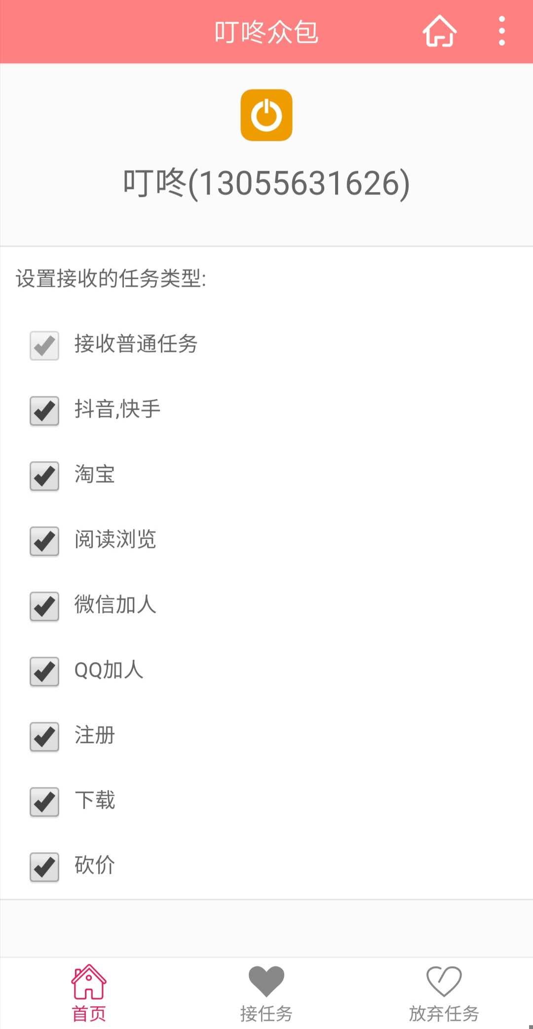 1.叮咚任务平台app的后台任务非常丰富,可以自由使用;