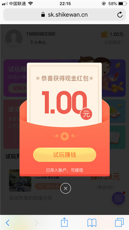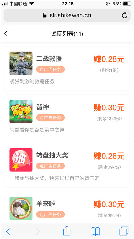 试客玩APP是一个免下载,免验证就能参与的手机赚钱网页,主要通过试玩微信小程序赚钱的平台,打开网页点击【试玩赚钱】进入任务列表,选择参与试玩的任务,按照流程提示进行试玩指定的微信小程序来获得收入,任务要求简单,价格高