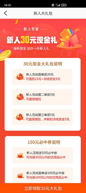- 说 明:完成新人任务2.5元红包,1元即可提现