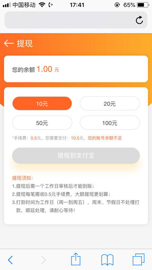 3、10元即可申请提现到微信钱包
