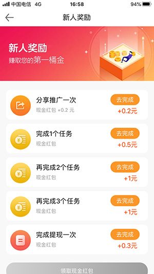 - 说 明:完成新人任务2.5元红包,1元即可提现