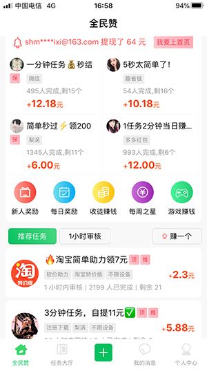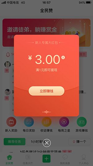 3、邀请好友:三级内徒弟完成首个任务、完成任意试玩游戏、完成任意悬赏任务,您均可获得相应金额的奖励或提成。