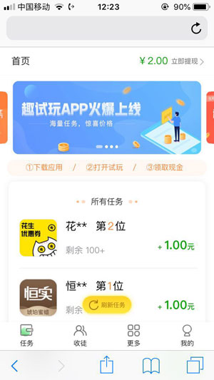 趣试玩软件任务多多,单价高,每天下午大量任务更新