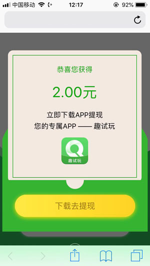 趣试玩是苹果手机ios应用app试玩平台,我要下试玩app三分钟奖赏一元,第一次一元就能取现,后续十元起取现,会员注册就送两元。任务多多,总价高,每日下午大批量任务升级。