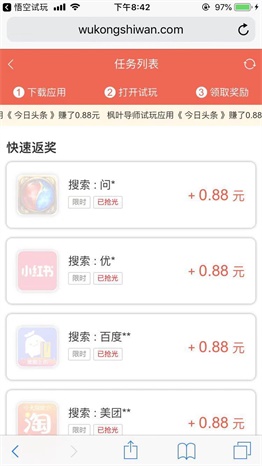 1.免费试玩兼职赚钱,每日任务价格0.88元起