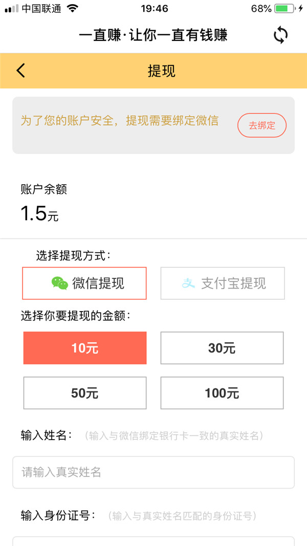 2、提现门槛低,只要满足10元就能提现,而且到账快;