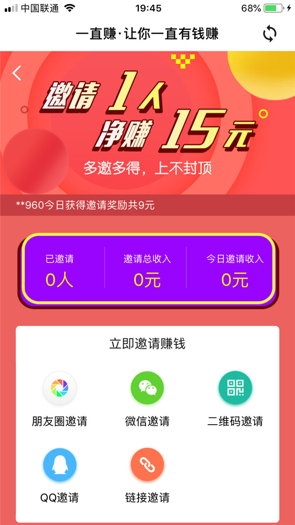 3、邀请一人最高可赚15元,多邀多得,上不封顶;